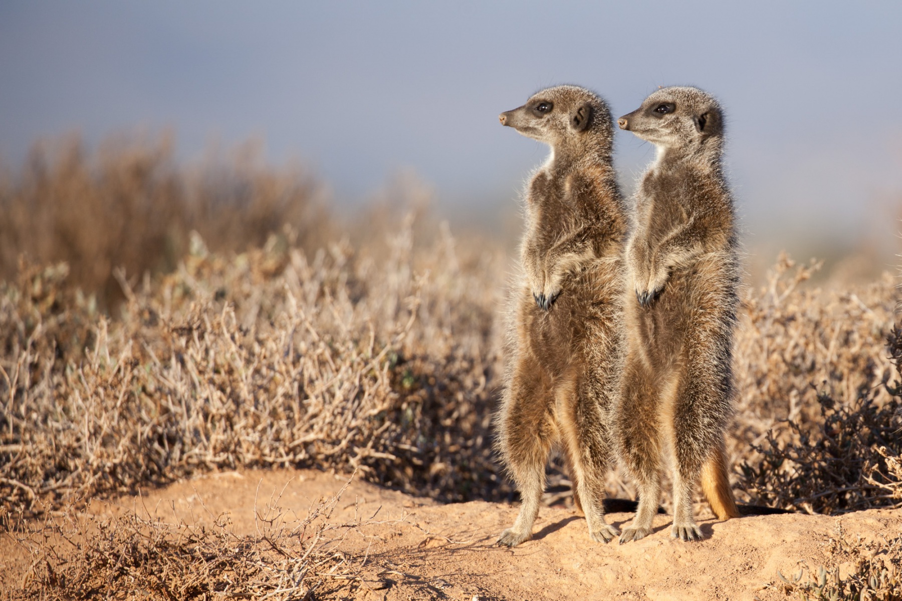 Weiter geht es nach Oudtshoorn, dem Zentrum der Südafrikanischen Straußenindustrie. Übernachtet haben wir im “Die Fonteine Guesthouse”. Dort hat Stefan bei einem abendlichen Barbecue zum ersten Mal Straußenfleisch gegessen. Auf dem Programm stand eine Exkursion zu einer Erdmännchen-Familie, zu der wir frühmorgens vor Sonnenaufgang aufgebrochen sind. Bei dieser durch einen Ranger geführten Erdmännchen-Safari hatten wir die einmalige Möglichkeit, die putzigen Tiere, auch Meerkats genannt, ausgiebig zu beobachten und fotografieren. Dies funktioniert natürlich nur, weil man die dort lebenden Erdmännchen, die von Natur aus sehr scheu sind, an die Anwesenheit von Menschen gewöhnt hat. Dazu hat man vor dem Bau über einen langen Zeitraum menschlich verkleidete Puppen aufgestellt und menschliche Stimmen über ein Audiogerät abgespielt. Irgendwann sahen die Tiere in der Anwesenheit von Menschen keine Gefahr mehr und damit sind erst solche Beobachtungen überhaupt möglich. Nachmittags haben wir eine Straußenfarm besucht und dabei viel über die urzeitlich anmutenden Tiere erfahren.