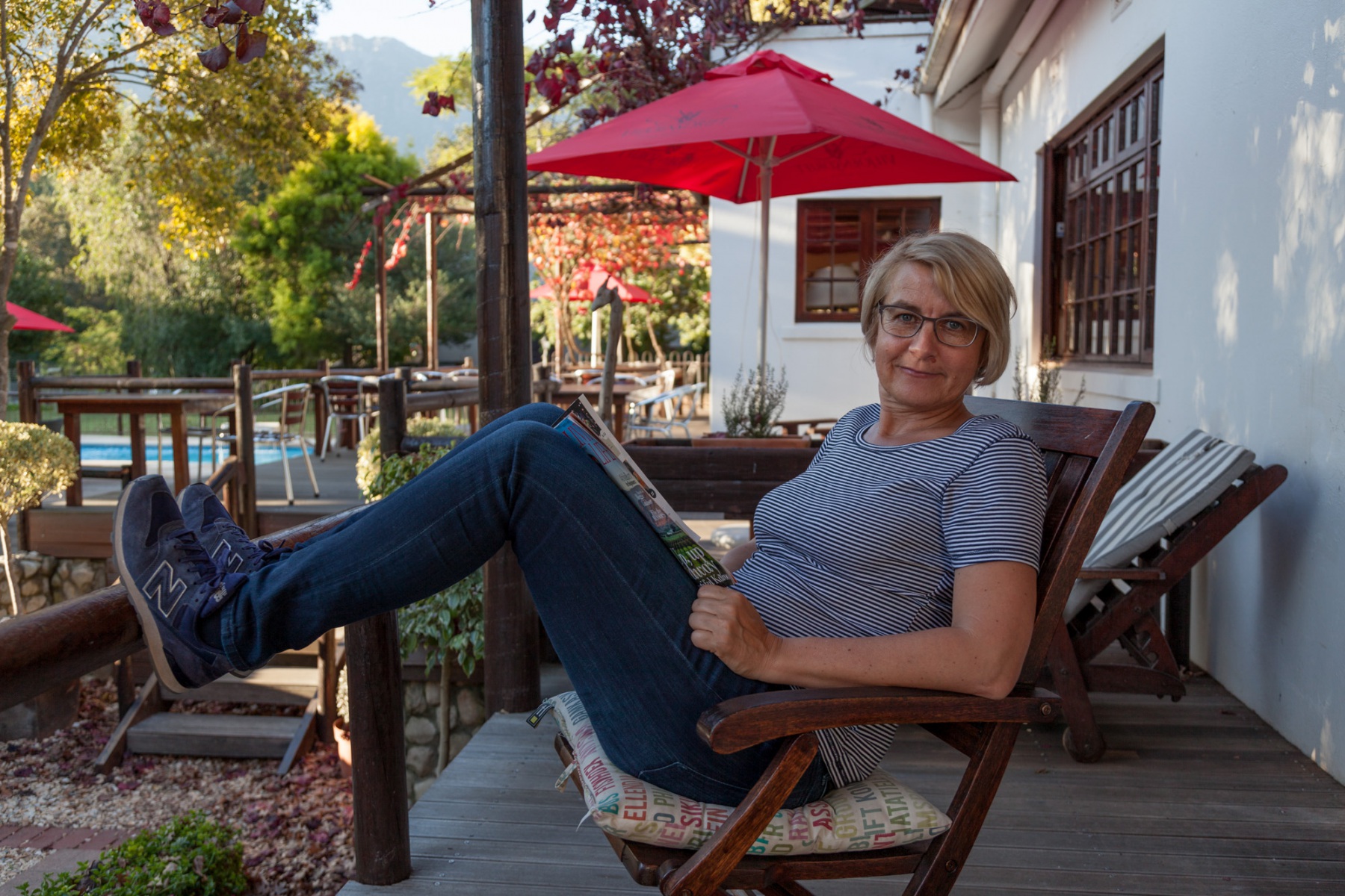 Über einen Zwischenstopp in Montagu – ein verschlafenes Nest, lauschig in den Bergen gelegen – erreichten wir unser nächste Ziel, das Aan de Oever Guesthouse in Swellendam. Die Unterkunft liegt im Grünen direkt an einem Bach. In der schönen Außenanlage mit Pool konnte man sehr viele Vögel beobachten und natürlich auch wunderbar entspannen.