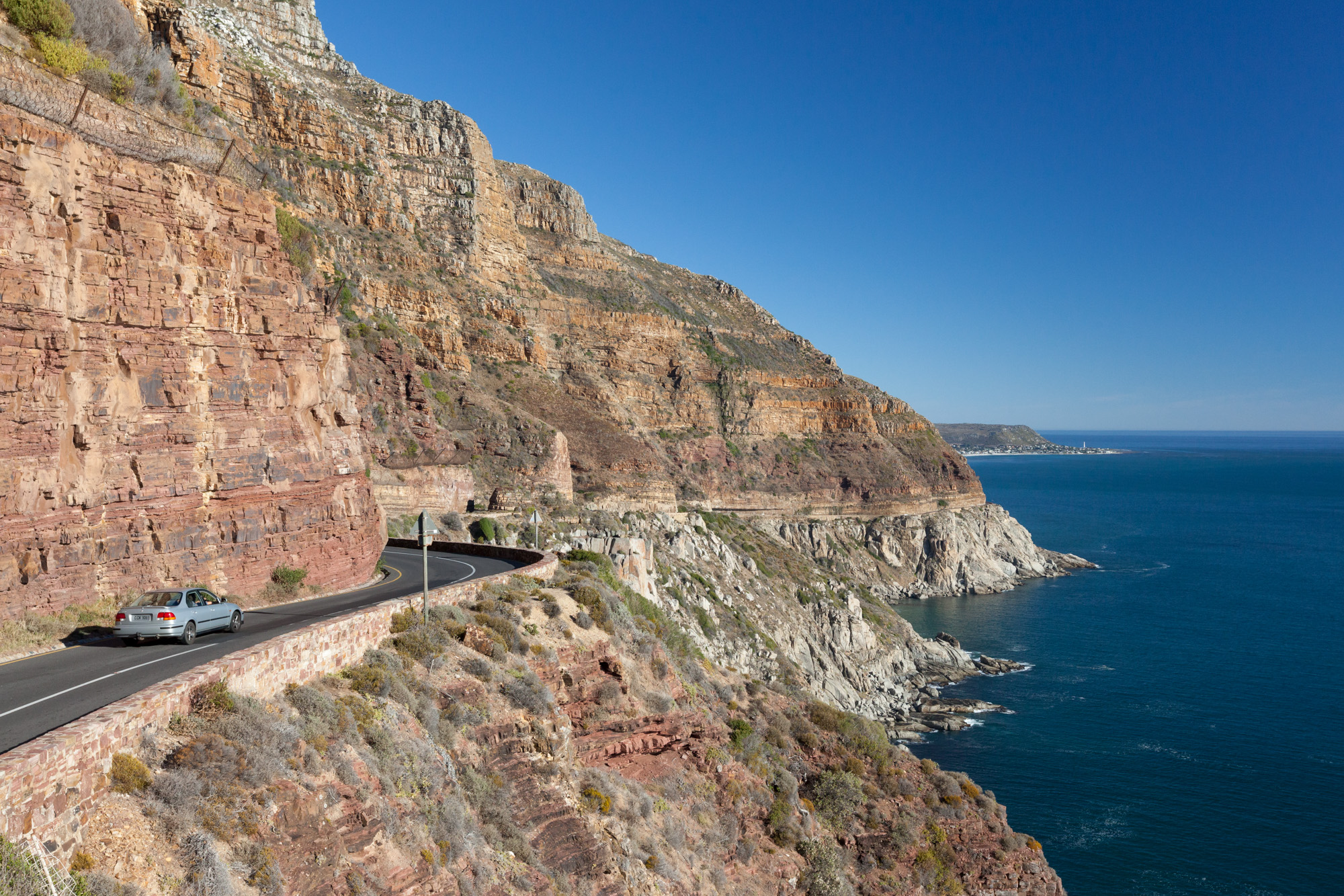 Der Chapman’s Peak Drive gilt weltweit als eine der schönsten und spektakulärste Küstenstraße. Die etwa 10 km lange und kostenpflichtige Mautstraße schlängelt sich direkt über der Atlantikküste und bietet zahlreiche Parkmöglichkeiten, um die atemberaubende Aussicht zu genießen. Die Straße verbindet den Fischerort Hout Bay und die Stadt Noordhoek. Übrigens wird die Straße oft für Werbeaufnahmen von Autos genutzt, darunter auch deutsche Hersteller.